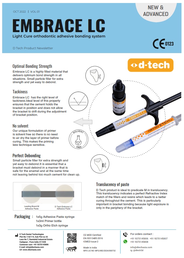 Ligature Ties – Smooth Ligation with Improved Module Design D-Tech Ligature Ties are premium elastomeric modules designed for smooth handling, easy ligation, and reliable archwire engagement. Featuring an improved module design, these ligature ties allow effortless placement and secure wire engagement during orthodontic procedures. The modules can be pulled cleanly from sticks without burs, tearing, or weak spots — ensuring consistent performance and reduced material wastage. Engineered for durability and elasticity, D-Tech Ligature Ties provide stable force retention throughout treatment while enhancing chairside efficiency. Product Information D-Tech Ligature Ties provide: • Improved module design for easy ligation • Clean removal from sticks without burs • No weak spots or tearing • Strong and consistent elasticity • Reliable archwire engagement Key Features & Benefits ✔ Improved Module Design – Easy and efficient ligation ✔ Clean Pull-Off from Sticks – No burs or defects ✔ Uniform Elasticity – Consistent force application ✔ Durable Material – Reduced breakage ✔ Secure Wire Engagement – Stable orthodontic mechanics ✔ Comfortable Intraoral Use – Patient-friendly Clinical Advantages • Faster chairside application • Reduced material wastage • Reliable performance during alignment phase • Consistent orthodontic force retention • Smooth and predictable treatment progression Packaging 📦 1 Pack of 1040 pcs