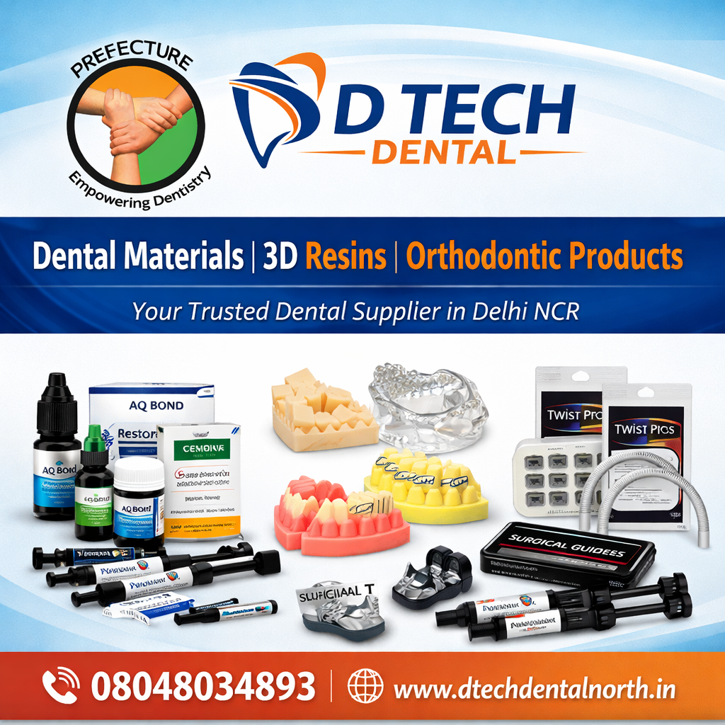 When it comes to premium quality dental materials in Delhi, D Tech Dental stands as a trusted name among clinics, hospitals, and dental professionals. As a leading dental products supplier in Delhi, we provide a comprehensive range of advanced solutions designed to meet modern clinical and digital dentistry needs. Visit us at www.dtechdentalnorth.in